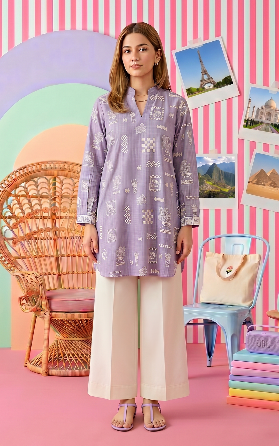 2 PcsFabric: Premium JacquardShirt Cut: Contemporary straight-cut tunic with a band collar and a button-down...