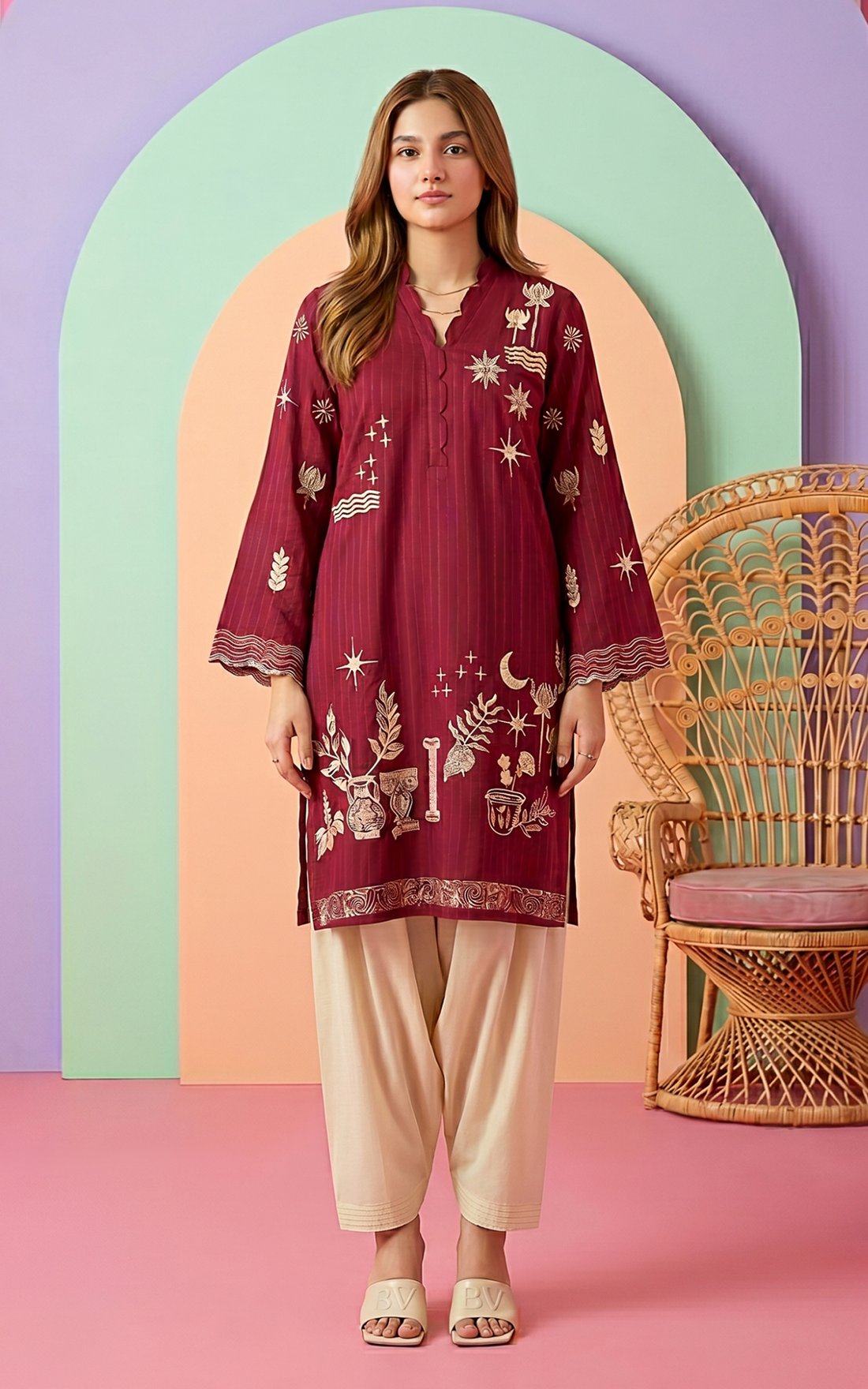 Crimson Courage VUL26-08 | 3pcs Embroidered Unstitched Summer