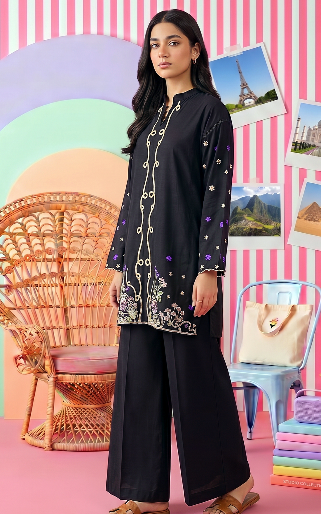 2 PcsFabric: Premium JacquardShirt Cut: Long, straight-cut tunic featuring a split V-neckline and side slitsTrouser:...