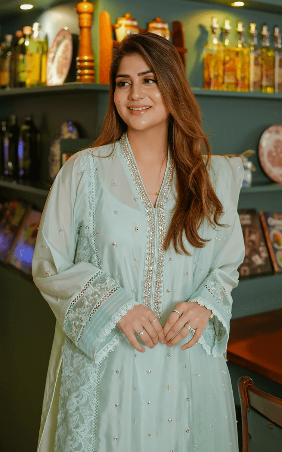 Color: Ice Green & MaroonPrice Includes:Shirt, Shalwar & DupattaDetails of Fabric:Shirt: Korean Raw SilkShalwar: Korean Raw SilkDupatta: NetSize Customize: YesYou...