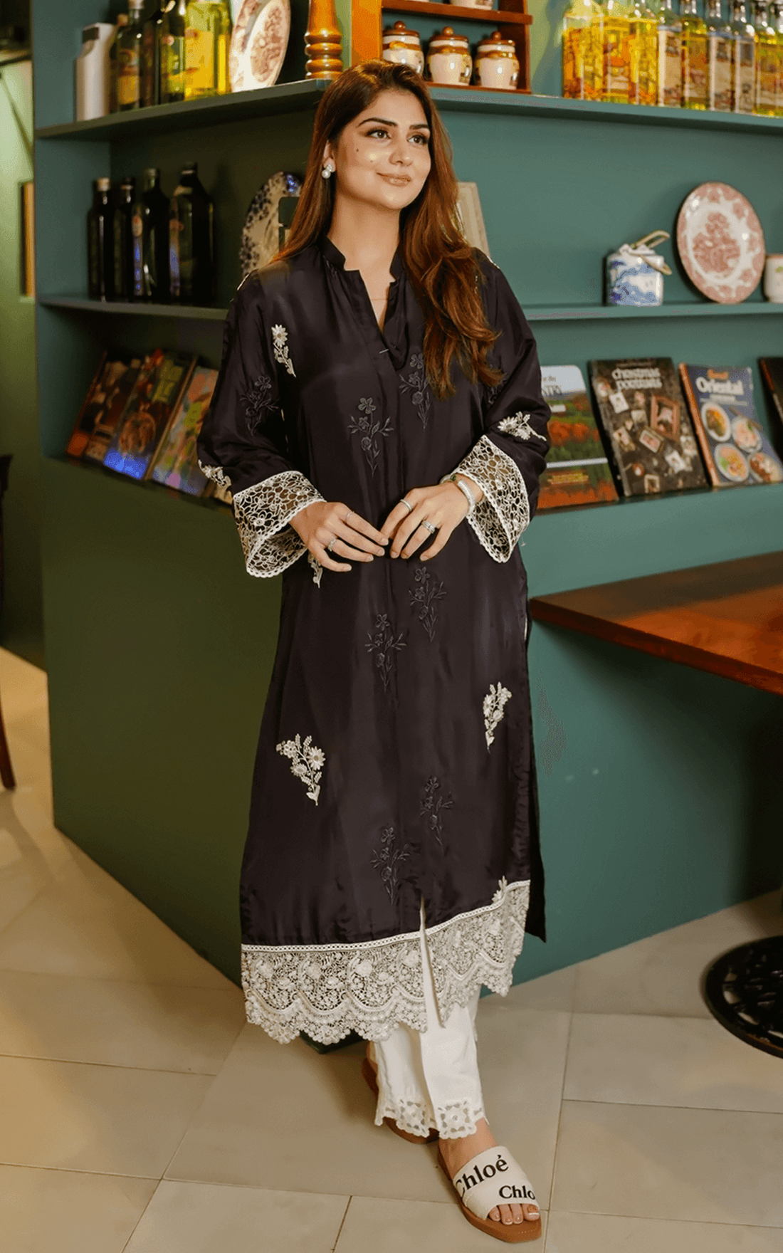 Color: Charcoal Black and white Price Includes:Shirt & trouser Details of Fabric: Shirt: Pure Silk Pants:...