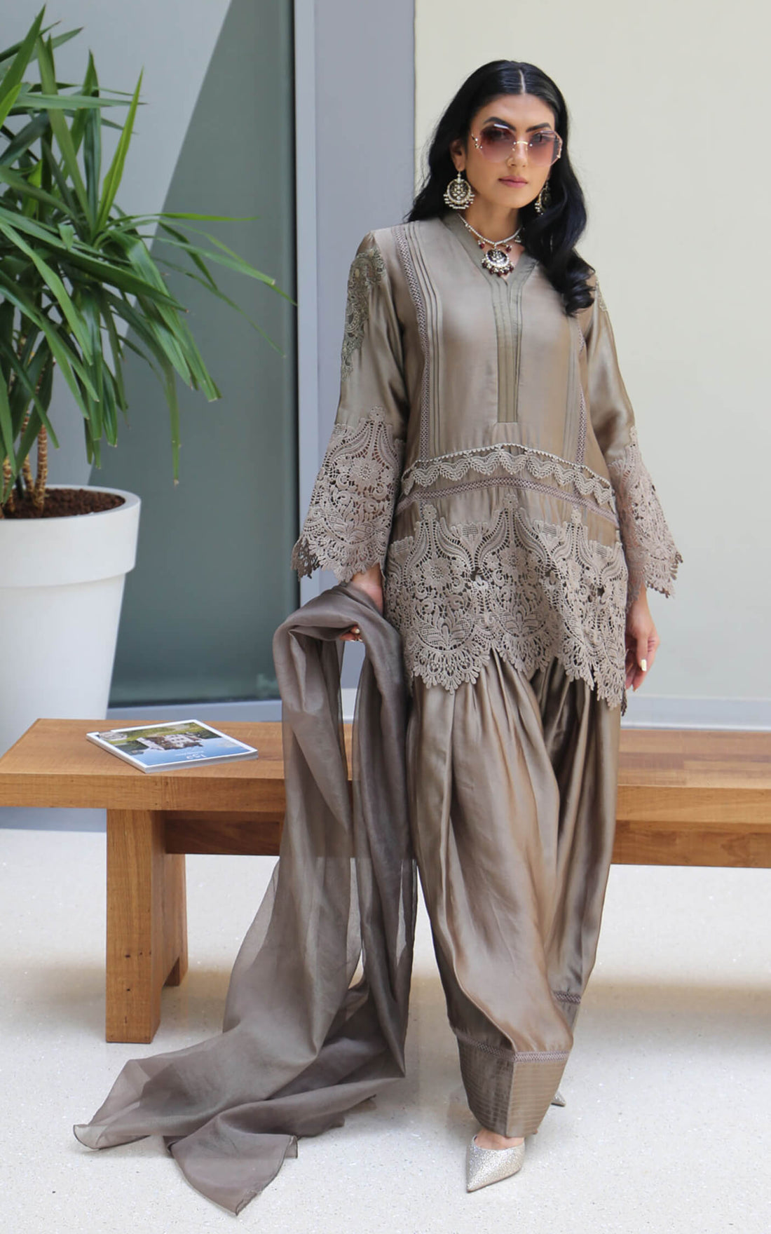 A celebration of regal tradition and contemporary elegance, the Mehrun Gold Bridal Ensemble is designed...