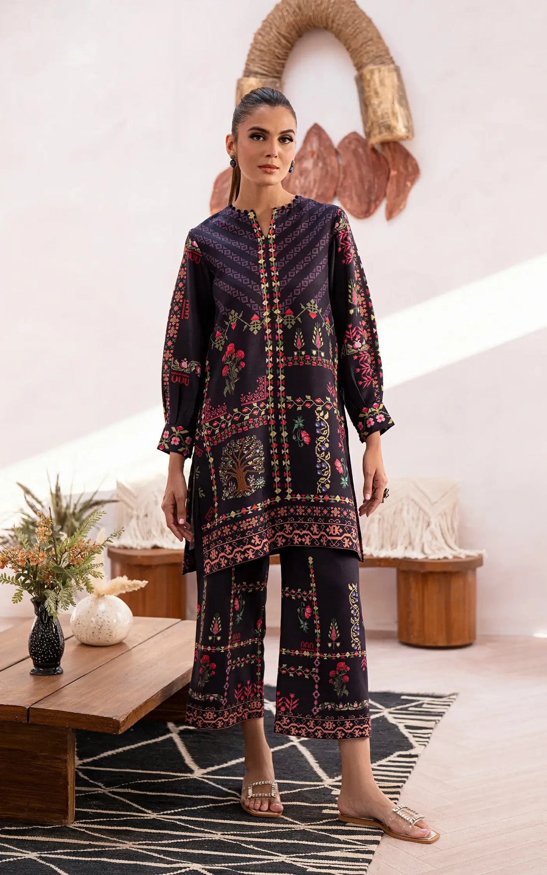 Product Description:This enchanting coord set in PK raw silk features whispering florals on a midnight...