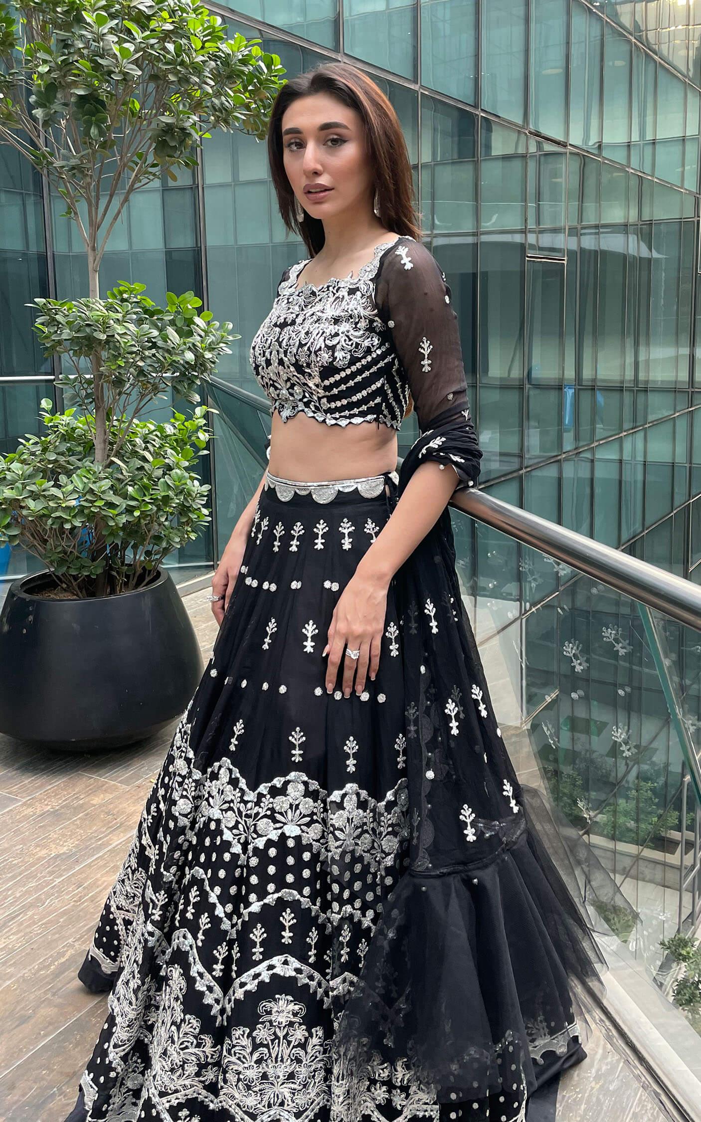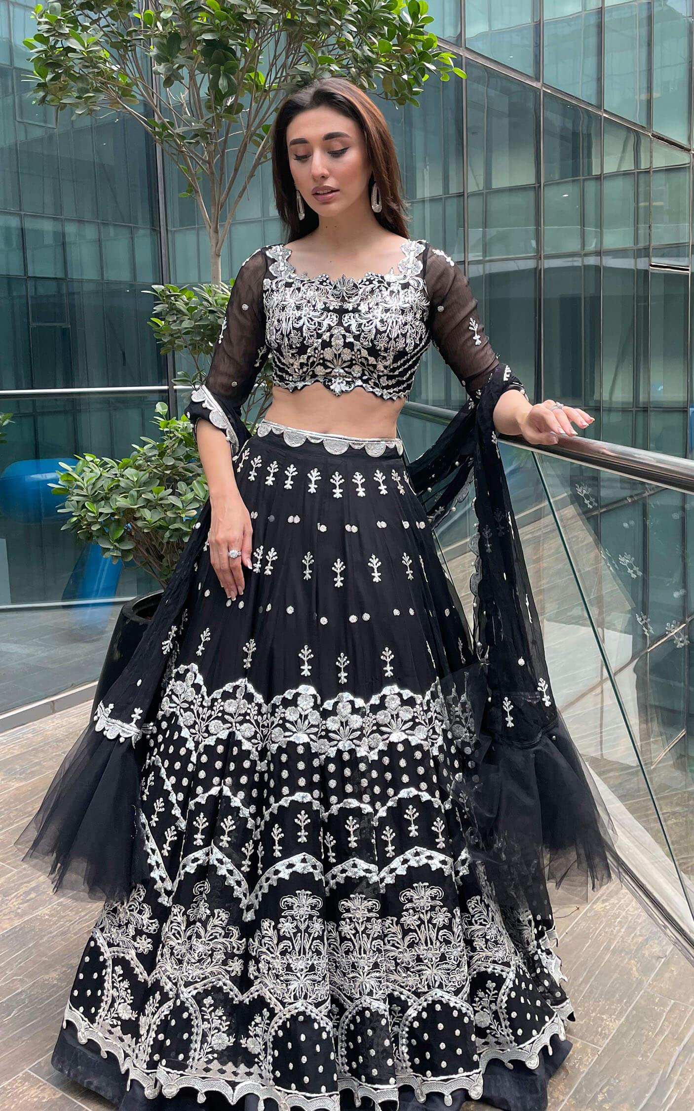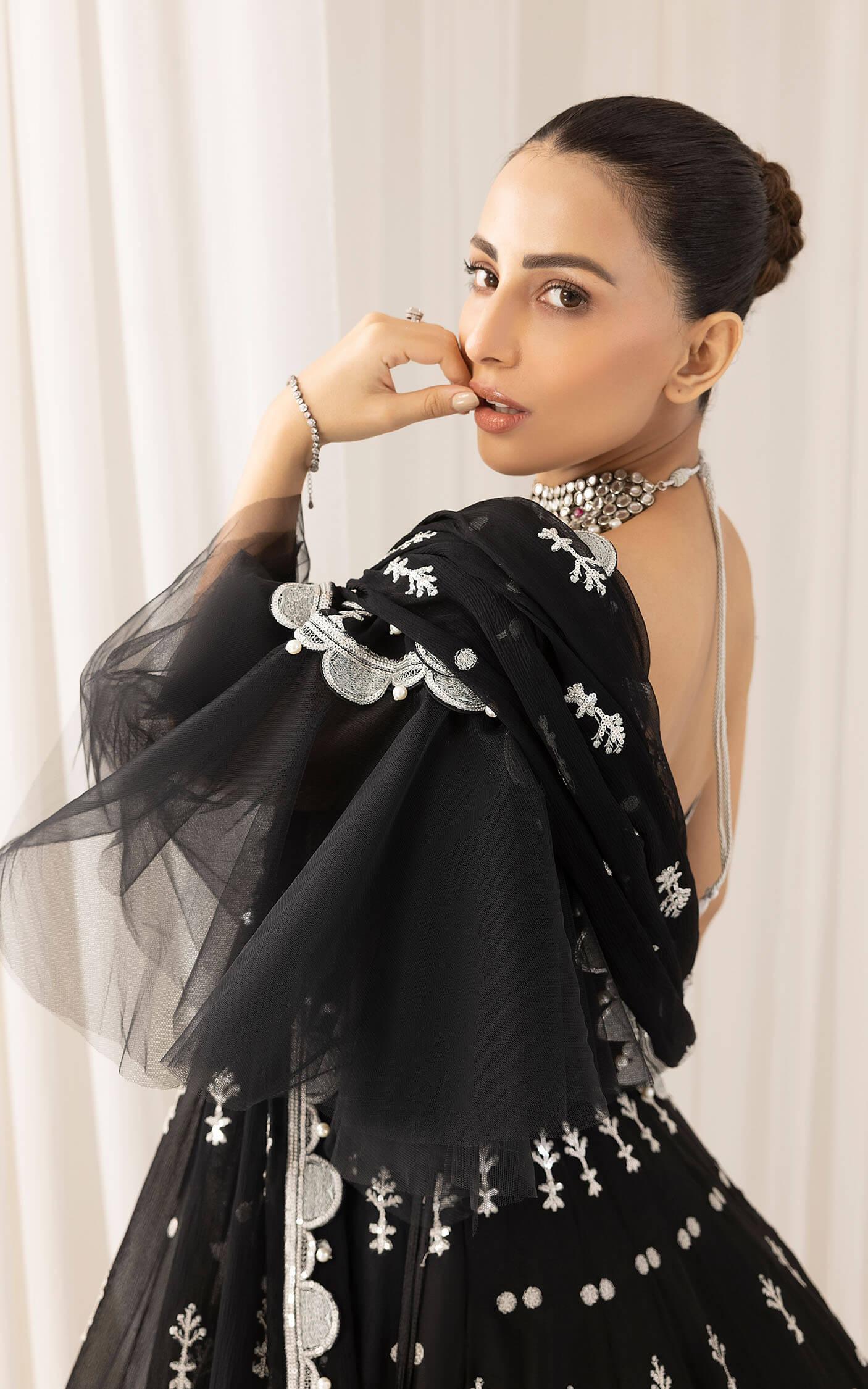 - Embroidered sequined Front/Back body on dyed chiffion.
