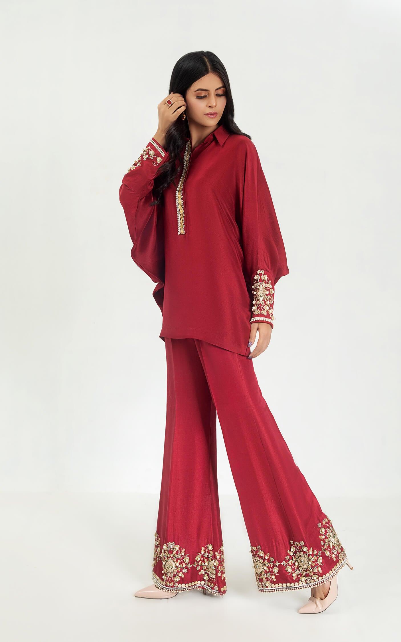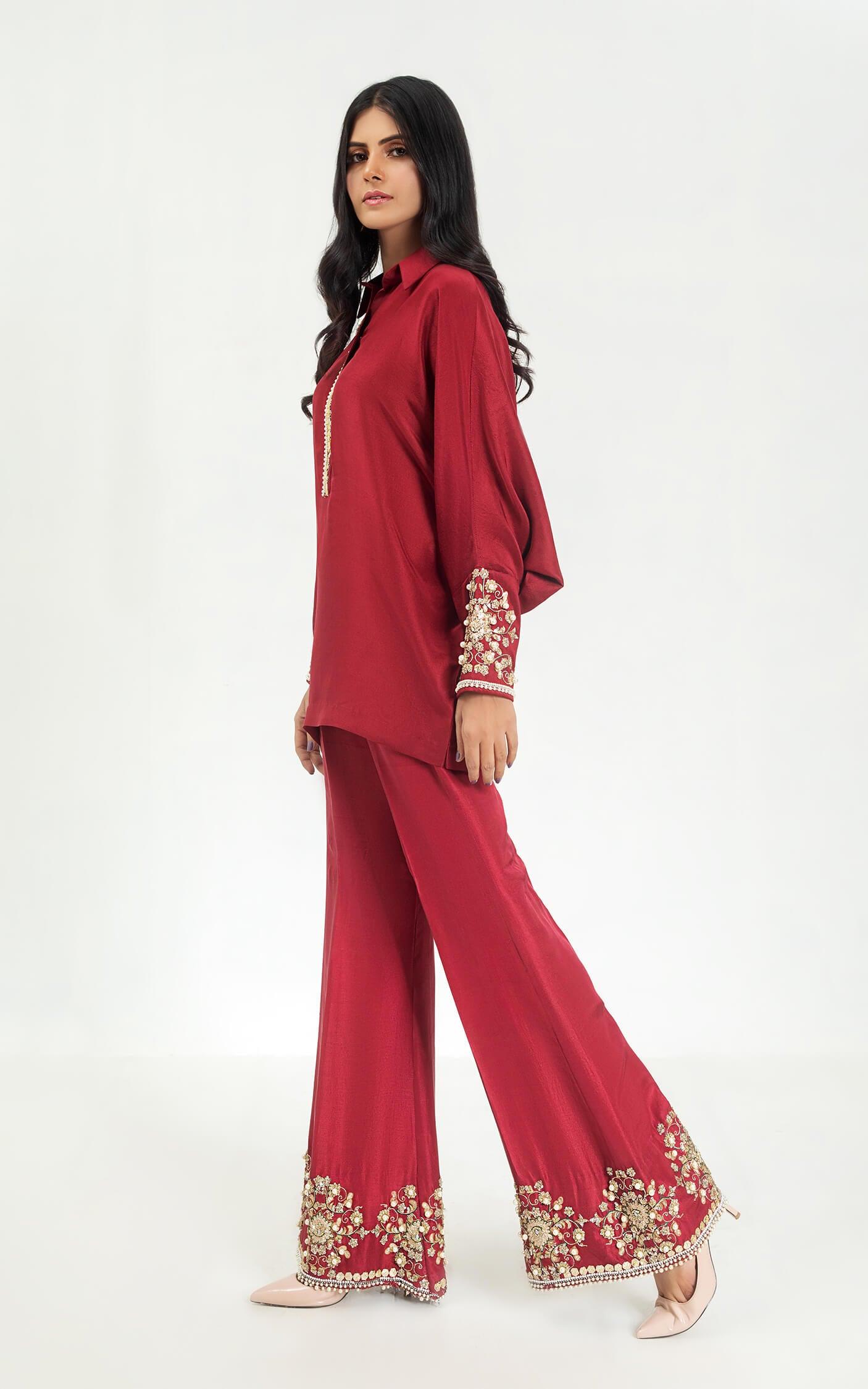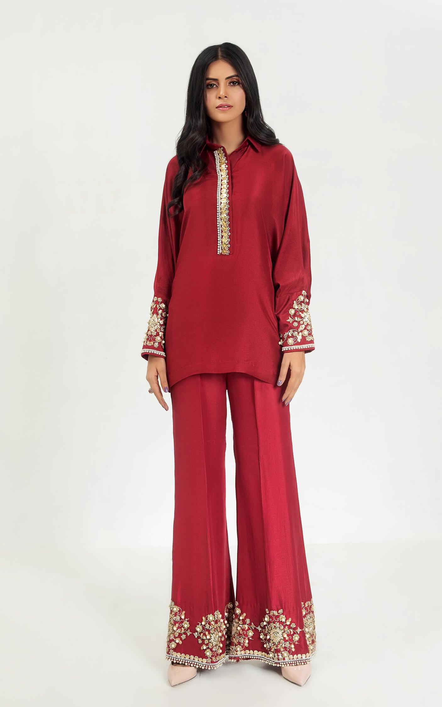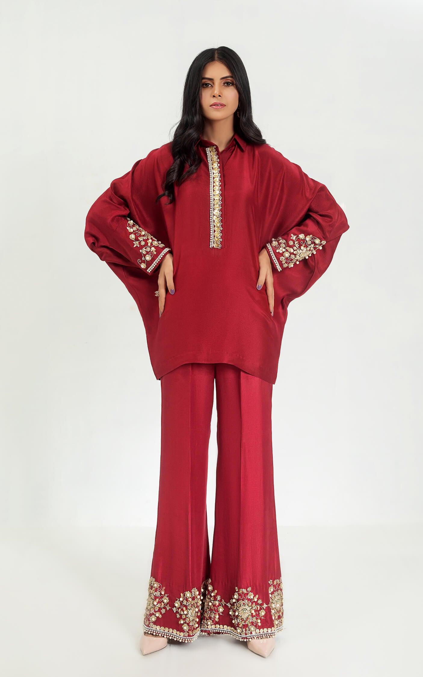 - Embroidered and Hand Embellished Sleeve Cuffs, Neck Packet, Trouser Hem.