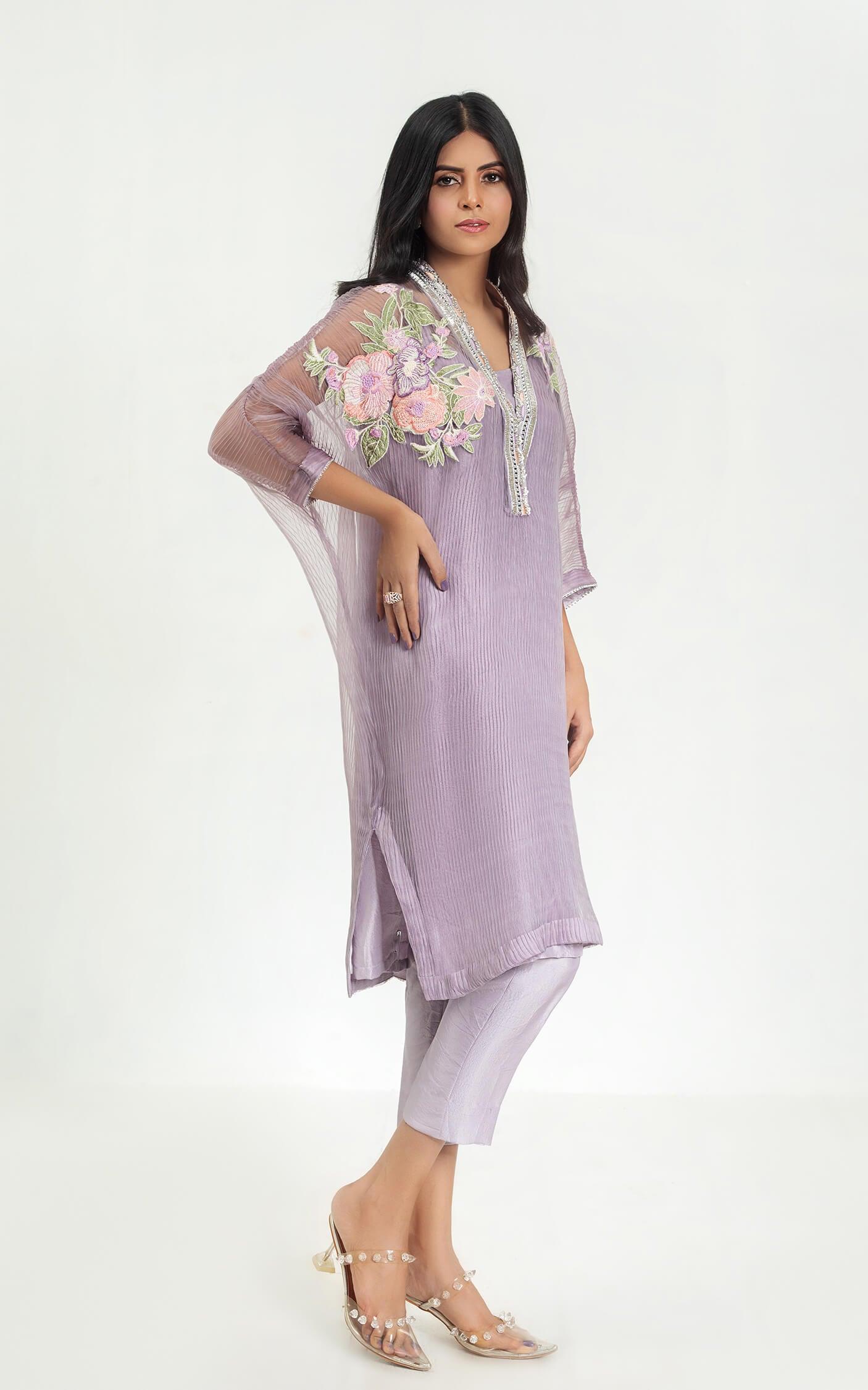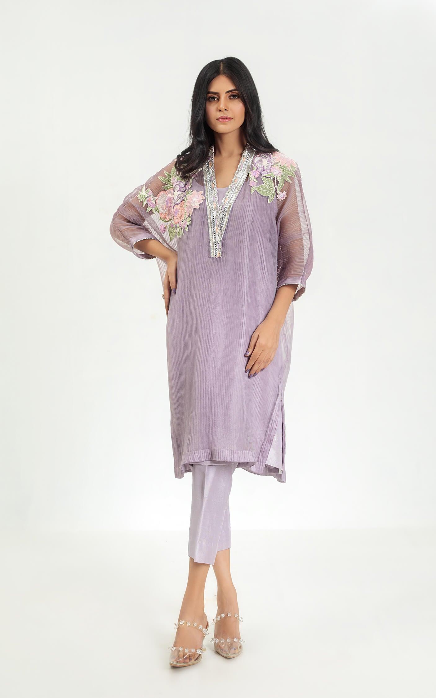- Embroidered Floral Embroidery Patches on Shoulder with Front Neck Placket Hand Embellished.