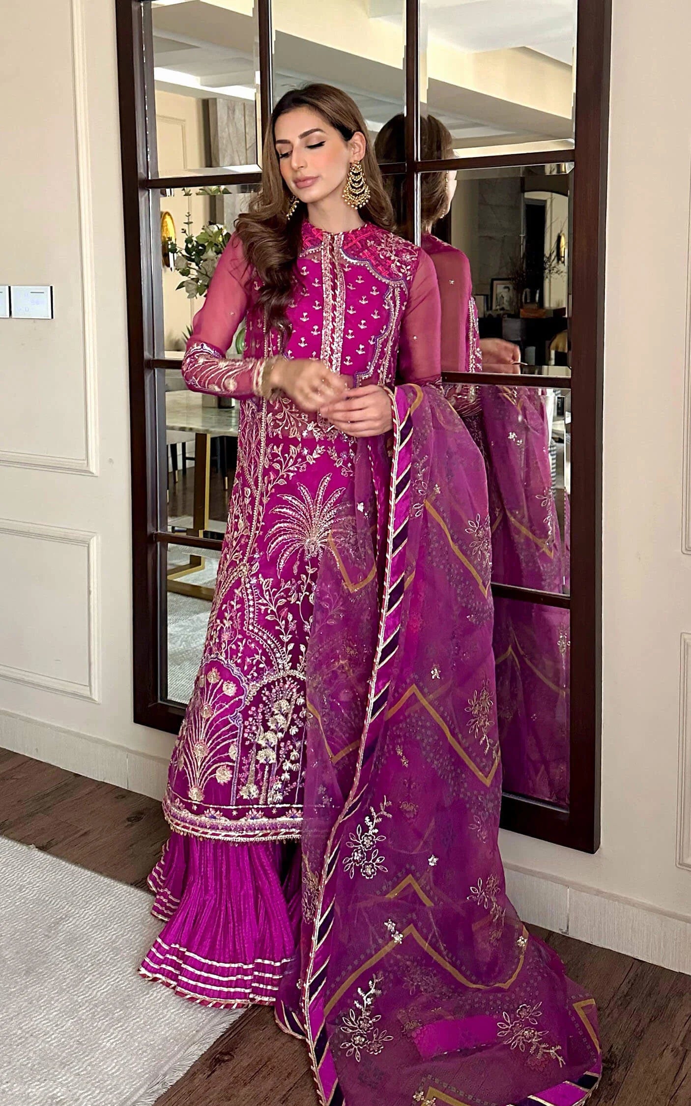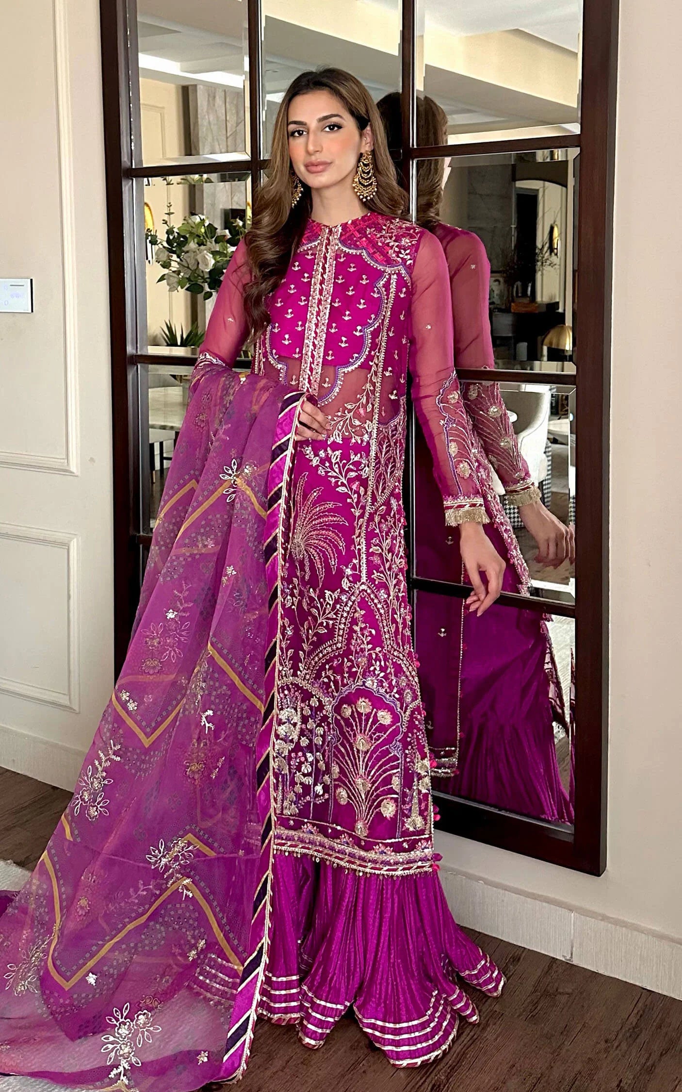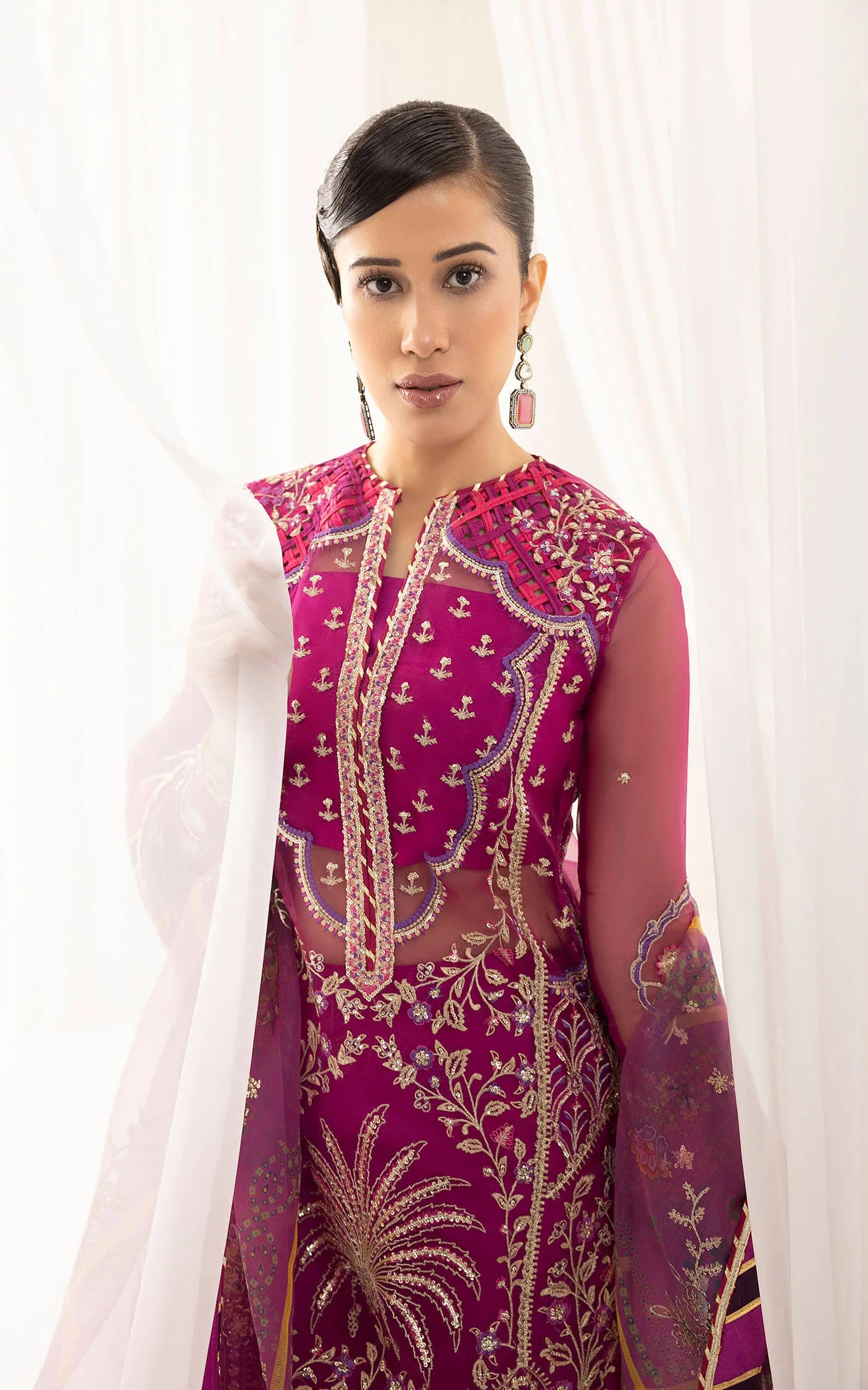 - Embroidered sequined dupatta on digital printed organza.